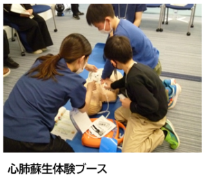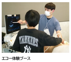 見学会は医療体験、研究者・医学生との交流、そしてエコチル調査相談で構成され、医療体験ブースでは、エコーでの心臓や肝臓の観察や、心肺蘇生・AEDの操作を実際に体験することを通して、楽しみながら医療に触れていただく機会になりました。